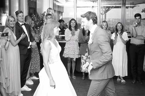 „Tobias hat unsere Hochzeit musikalisch begleitet und es war in jeder Hinsicht perfekt. Die Kommunikation war professionell und herzlich, die Tanzfläche durchgehend voll und das Überraschungs‑Aftermovie am nächsten Tag war das i‑Tüpfelchen. Wir sind unglaublich dankbar und würden ihn jederzeit wieder buchen.“